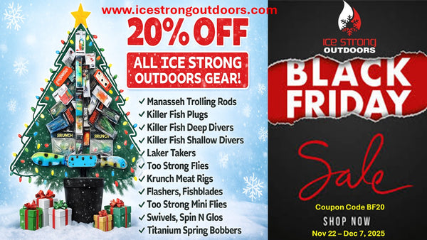 Ice Strong Outdoors Laker Taker Lures are great for controlling the trout population, and our Too Strong Premium Trolling Flies and Krunch Meat Rigs are King Killers! And new for 2023, Krunch Kustoms - check out our kustom meat heads!