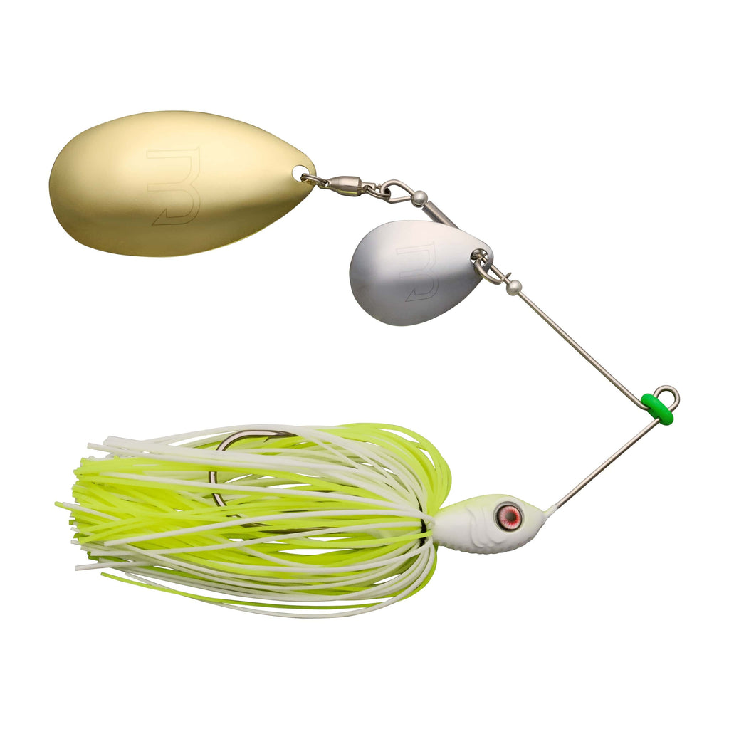 Hoosier Daddy is built for versatility and power. The Indiana blade adds a unique combination of flash and subtle resistance, mimicking fleeing baitfish with precision. While the Colorado blade delivers a heavier thump and vibration, perfect for dirty or low-light conditions, while Together, they create an irresistible dual-action that draws aggressive strikes from bass lurking in cover or open water.