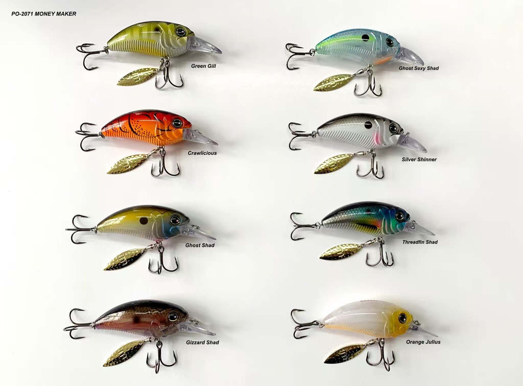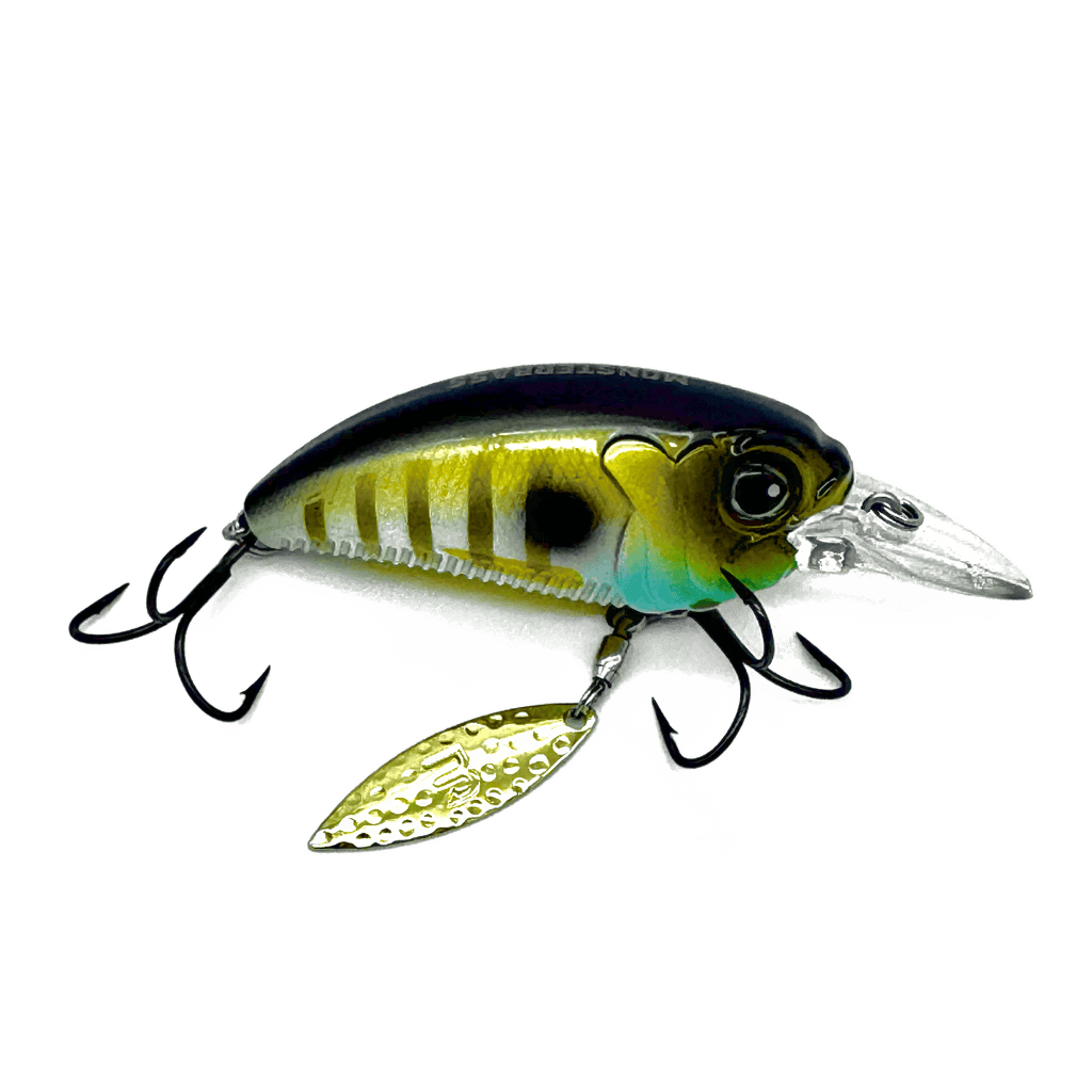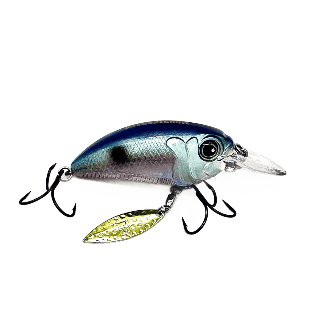Designed to stand out in a sea of crankbaits, the MONSTERBASS Money Maker delivers a deadly combination of flash, vibration, and erratic action that big bass can't ignore. Featuring a thick, flat-sided body and a premium willow blade rigged on a high-quality swivel beneath the front hook hanger, the Money Maker kicks into action the moment it hits the water, producing a brilliant shimmer and irresistible flash.