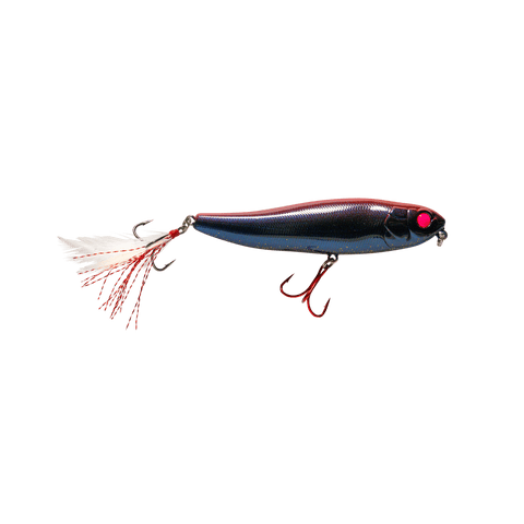 Why the red hook? You are using nature’s instincts to your advantage by signifying a wounded victim. The Patriot is available in 8 ultra premium colors and great anywhere you’d use any walking bait. Throw it around the edges of weed beds, and walk it back-and-forth over shallow rocks. Fish it gently, though, because this bait’s design gives a side-to-side action all its own.