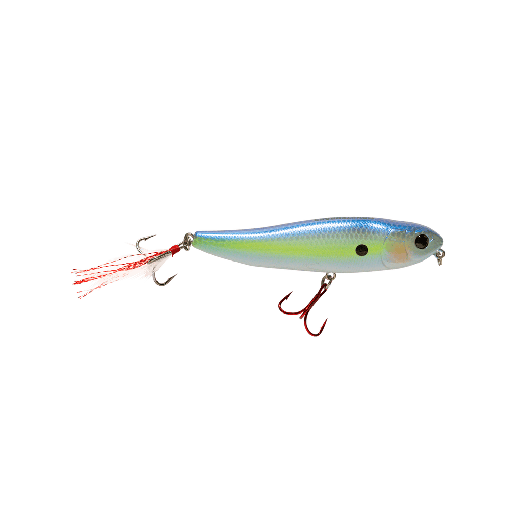 Learning to fish a topwater walking bait the right way can take a little bit of extra time and practice. You’re going to want to learn how to “walk-the-dog” which is basically a way of retrieving the lure that makes the bait move side to side, slashing one direction and then the other. After you cast out the Patriot, let it sit until the rings have dissipated. Many times you’ll get strikes before you even move the bait. Then, point your rod tip at the bait and with a small amount of slack in the line give your rod tip short “pops” downward. Repeat this action throughout the length of your retrieve.