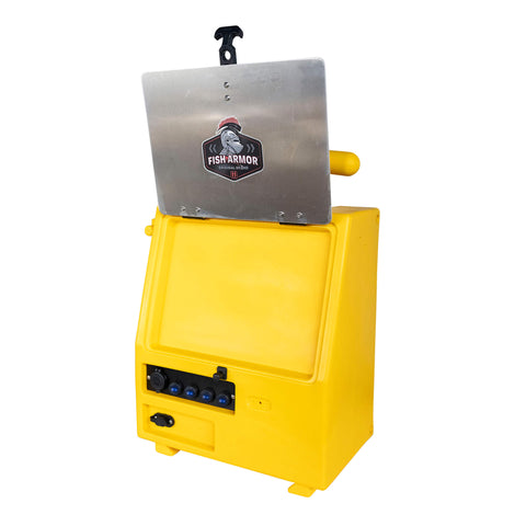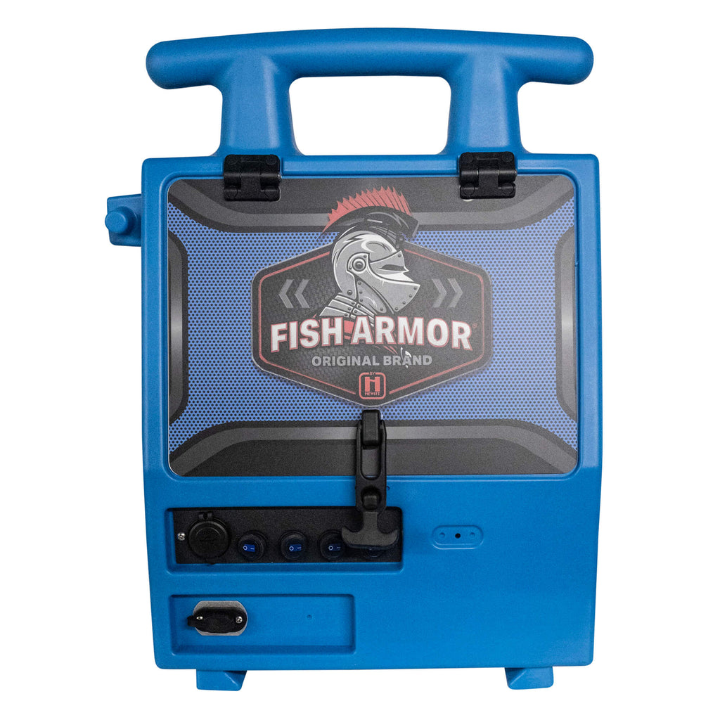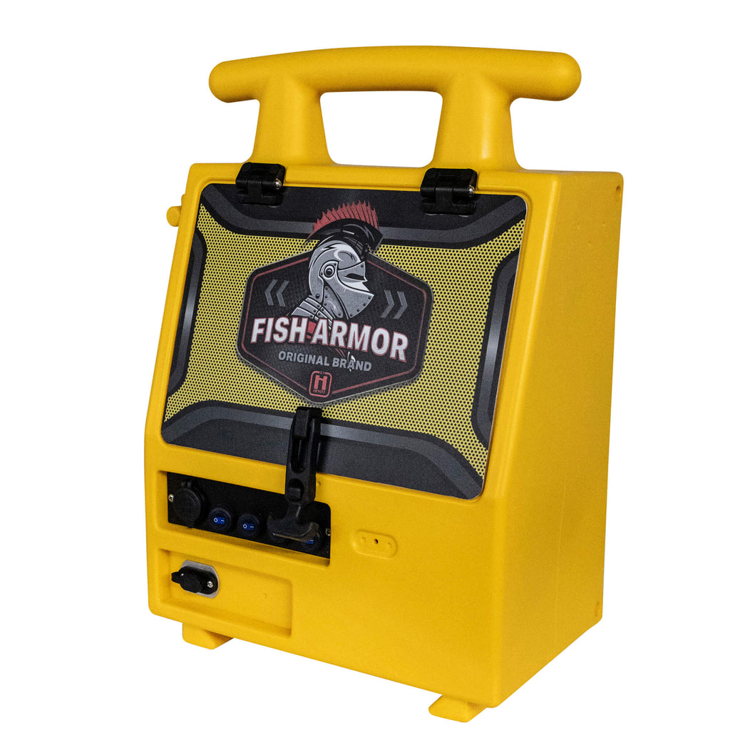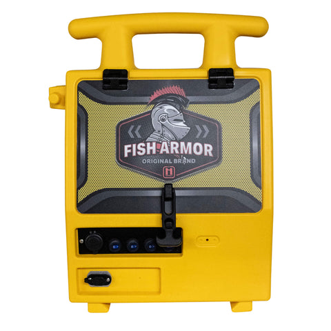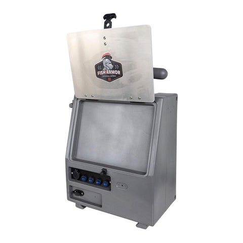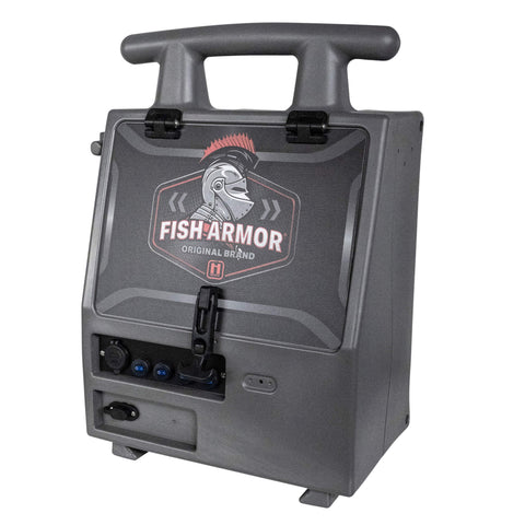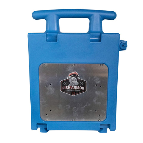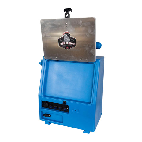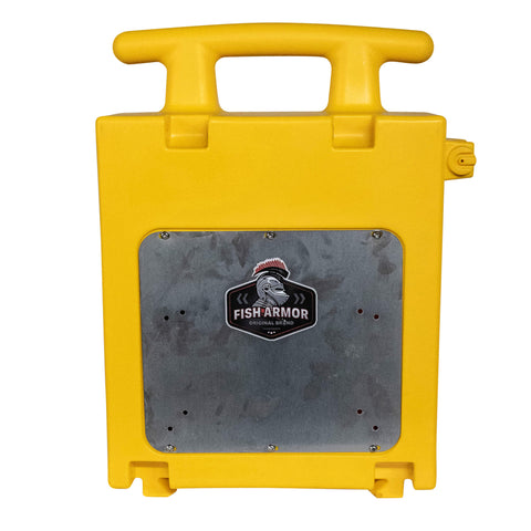 The all-new Fish Armor Pro Extreme. Roto-molded for extreme conditions, providing lightweight, full protection for your forward-facing sonar unit and all components for your Garmin Livescope, Lowrance Active Target or Humminbird Mega Live. Flush mounting screen availability sheds weight and offers maximum protection (available for most screen types). Positive locking marine-grade aluminum door doubles as your sun shield with our tension adjustable friction hinge design. Developed by fishermen for fishermen.