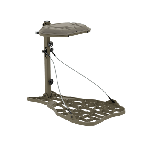The all-cast aluminum platform makes this stand completely silent and free of creaks and pops when temps fluctuate. The solid aluminum construction also helps the stand lock into tree bark when tightened with the included VersaStraps™. This stand comes with a lifetime warranty.