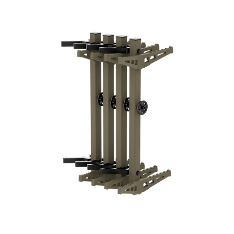 Sold in packs of four (4) or as a single stick, these 17" climbing sticks should get you anywhere from 10-12 feet up if placed moderately. The bottom step comes equipped with a buckle strap to hold all four together for easy organization and stacking. The aluminum V-Bracket locks into tree bark for a solid, silent hold even in the coldest temperatures.